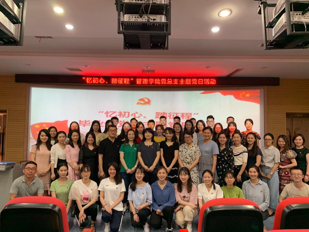 管理学院以“忆初心、踏征程”为主题开展了主题教育活动,并邀请应届毕业生柯文、龙学梅、蒋小辉、向丽萍和彭新宇五位同学为毕业生党员及部分在校学生作经验分享。彭新宇以“选择自己的路,做最好的自己”为主题给学弟学妹们讲述了自己的就职心得;樊麟以时间管理为主导,提醒同学们“学会管理时间,合理利用时间”的重要性;李月则为同学们分享了从校园人过渡到职场人的大学问;柯文从“我眼中的专业”出发,深刻的分享了选择会展专业的感悟和道理;王易就实际的专升本问题给大一大二的同学们指点迷津、分享学习方法。饶红梅以自己的参赛经验为引子,告诉同学们“更好的风景在路上”。他们还从党性修养、理想信念、新时代使命感、砥砺奋斗和党员先锋性模范性等方面表达了对母校的感恩之情和对未来的奋斗信心。