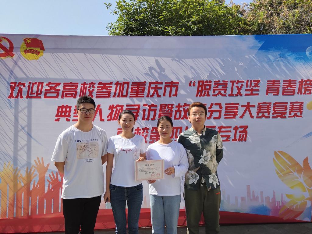 10月18日上午,重庆市“脱贫攻坚·青春榜样”典型人物寻访暨2019年“三下乡”社会实践活动故事分享大赛第四片区比赛在重庆三峡职业学院举行。我校城市建设工程学院“凝聚青春力量,助力科技支农”三下乡暑期社会实践团代表学校参加了此次比赛,获得第三名,成功入围市级决赛。