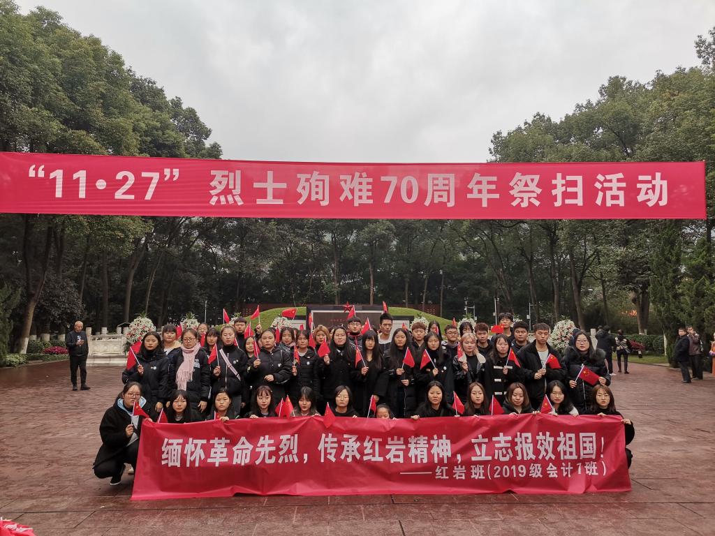 27日上午,红岩班全体同学、会计与金融学院党总支部分发展对象代表及教师代表等69人前往歌乐山参加重庆市“‘11•27’烈士殉难70周年祭扫和红岩诗文诵演”活动。19级会计7班邹和利同学表示,“浩气长存的烈士群雕,栩栩如生的烈士塑像,气势磅礴的大型浮雕,以及精美的大型壁画,烈士诗文碑林,似乎又把我们带回到了那段难忘的岁月,使我们接受了一次灵魂的洗礼。作为青年大学生,我们一定继承革命先辈的崇高精神,以青春梦激扬中国梦,用实际行动承担起中华民族伟大复兴的重任。”