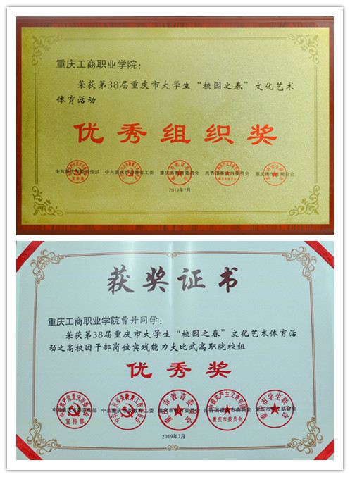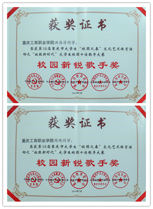 近日从团市委传来喜讯,根据《关于第38届重庆市大学生“校园之春”文化艺术体育活动获奖情况的通报》(渝青发〔201949号),我校师生再获多项集体和个人荣誉。其中校团委荣获优秀组织奖;传媒与设计学院李可和城市建设工程学院曲华威荣获优秀指导教师奖;管理学院2018级学生洪海清和周绮荣获“放歌新时代”大学生校园十佳歌手大赛之校园新锐歌手奖;电子信息工程学院“AI团子”团队荣获“志愿青春”智博会志愿服务技能大赛优秀奖;管理学院2017级学生曹丹荣获高校团干部岗位实践能力大比武优秀奖(高职高专组)。