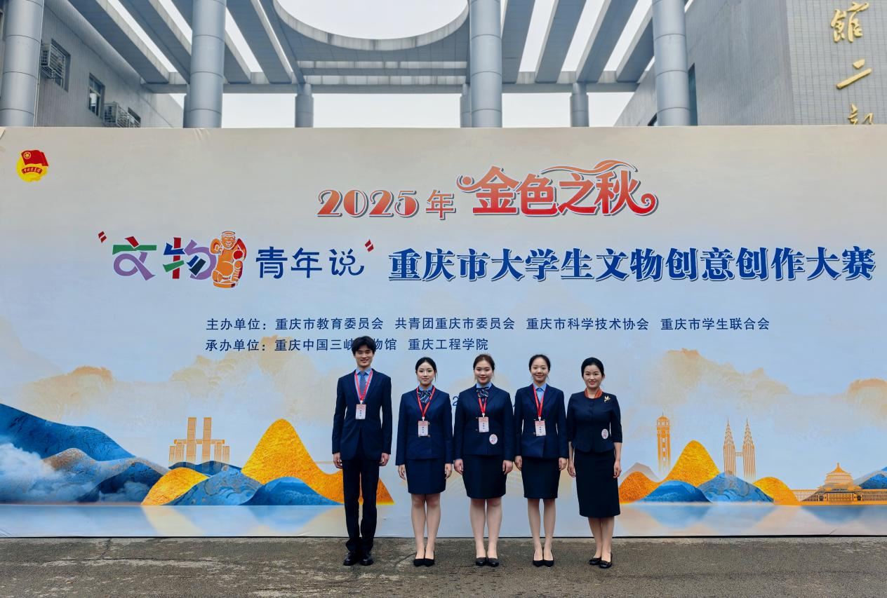 【供稿/旅游学院】近日,由重庆市教育委员会、共青团重庆市委员会、重庆市科学技术协会、重庆市学生联合会联合主办的2025年“文物青年说”重庆市大学生文物创意创作大赛落下帷幕,经激烈角逐,旅游学院教师郭小路、田江艳荣获教师组一等奖,学生黄奇文、唐妙可(指导老师:袁丽红、钟茜)荣获短视频组一等奖,学生黄诗语、刘林、李智伟、王琴、蒋元鑫(指导老师:他永丽、文杰)荣获AI数字创意组一等奖。