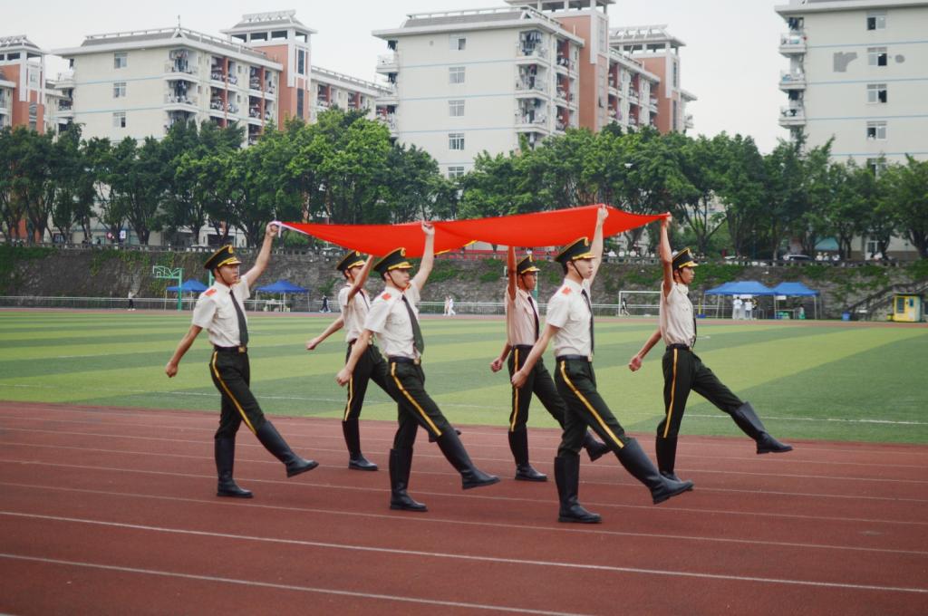 开幕式上,王剑华部长致开幕词,刘昌雄副校长宣布2023年华岩校区春季田径运动会正式开幕。国旗护卫队成员守护着鲜艳的五星红旗昂首迈向前方,国旗耀眼夺目,照在每一个工商学子的心间。随后,华岩校区各二级学院的方阵踏着《运动员进行曲》依次走过主席台,排舞《一起向未来》展现了同学们团结协作、奋发进取、不断超越的拼搏精神,赢得了全场观众阵阵掌声。
