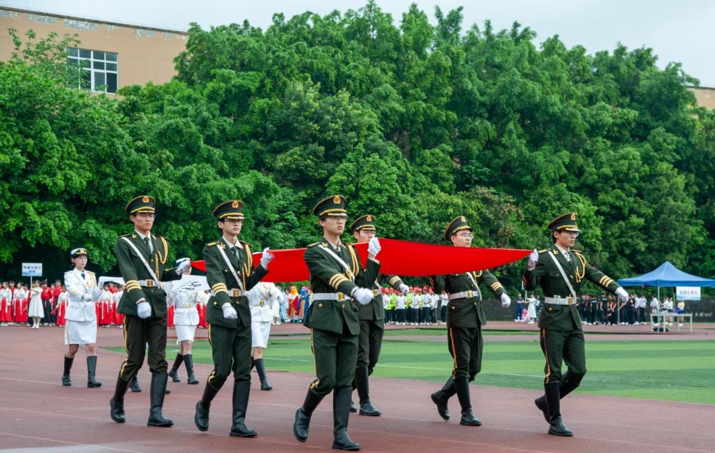 开幕式上,副校长罗晓良致开幕词并宣布2024年华岩校区春季田径运动会正式开幕。在激昂的进行曲中,国旗护卫队迈着铿锵有力的步伐走过主席台并接受检阅。伴随着铿锵有力的解说词,华岩校区各学院方队逐一入场,他们别出新意、各展风采,以响亮的口号与引人入胜的表演,表达着对这场体育盛会的期待与热爱。精彩纷呈的队列展示,生动展现着工商学子的蓬勃朝气和意气风发的精神面貌。