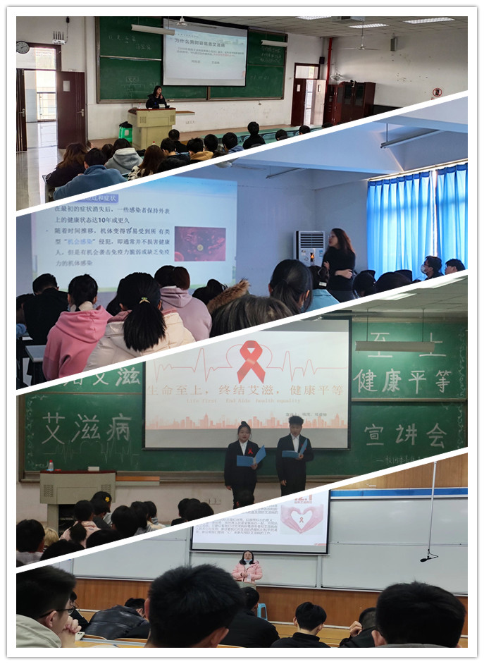 校青年志愿者协会组织开展了“2021年第六届全国大学生预防艾滋病知识竞赛”、“珍爱生命,让‘艾’远离”诗词比赛、“知‘艾’防‘艾’你我同行”手抄报比赛、“健康平等,为‘艾’发声”短视频大赛、“以我为热血”征文比赛等,有效增强同学们对艾滋病的认识,提高了主动防范意识和防范能力,避免发生高危行为,培养健康生活方式。