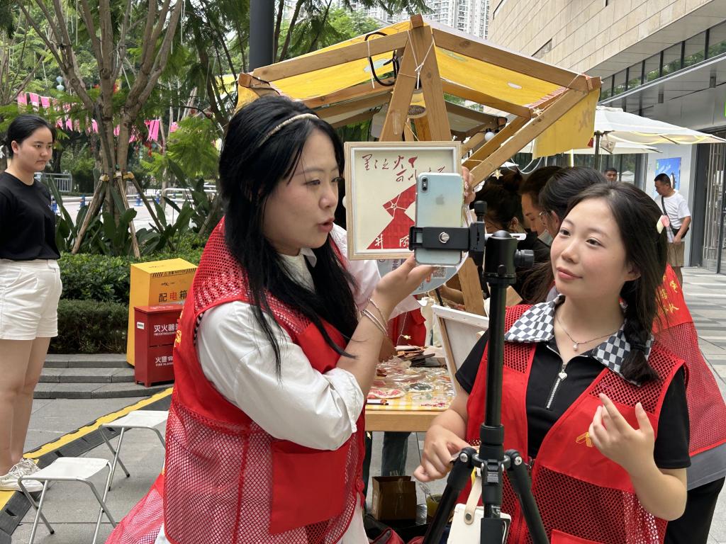 义卖前,团队成员成立临时团小组,通过主题教育理论学习、调研红岩革命纪念馆、提升红色文创设计能力等环节,完成红色原创手工艺品设计稿,协助爱心惠残众创空间残障人士共同完成作品200余件。义卖现场效果良好,得到了各界爱心人士的大力支持。