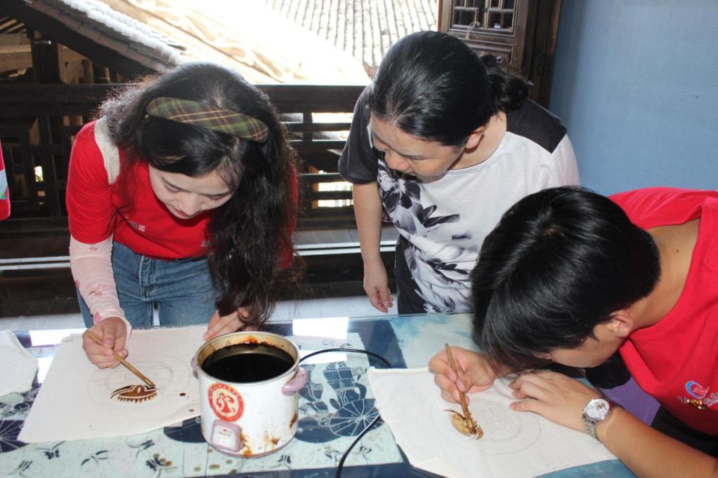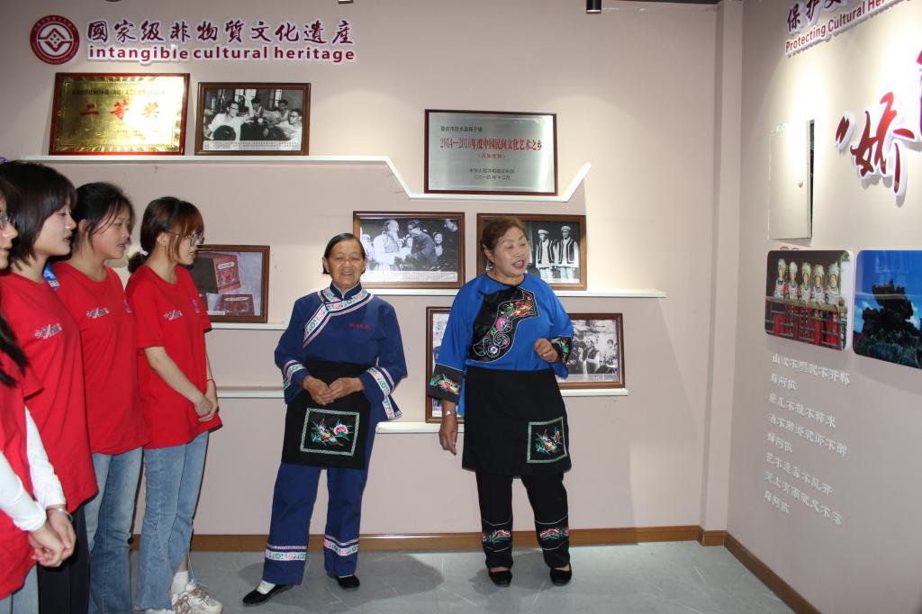 探寻非遗之美,坚定文化自信。“山歌山歌不唱呃,就不开怀哦,娇阿依,磨儿不推不转来哟……”独特又优美的旋律深深感染着实践团的每一位成员。实践团在非遗传承人庹清先老师的带领下,来到盘歌堂,一起学习了苗歌《娇阿依》《逢春歌》。实践团成员还走进蚩尤九黎城,学习苗族非遗蜡染技艺,体验蜡染工艺。实践团成员与苗家儿女一起传承彭水非遗民族文化,助力文化繁荣、汇聚复兴力量,坚定文化自信。