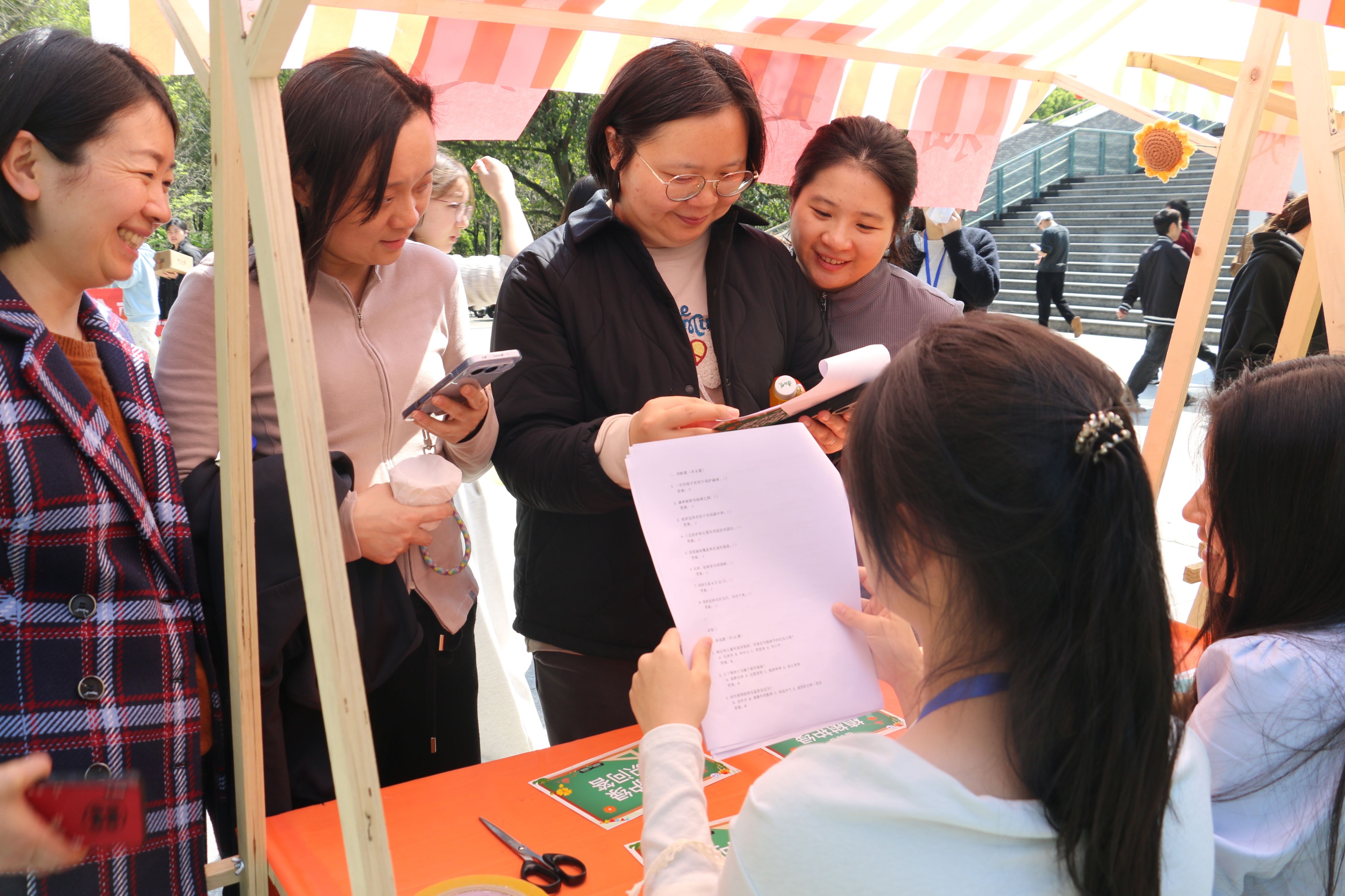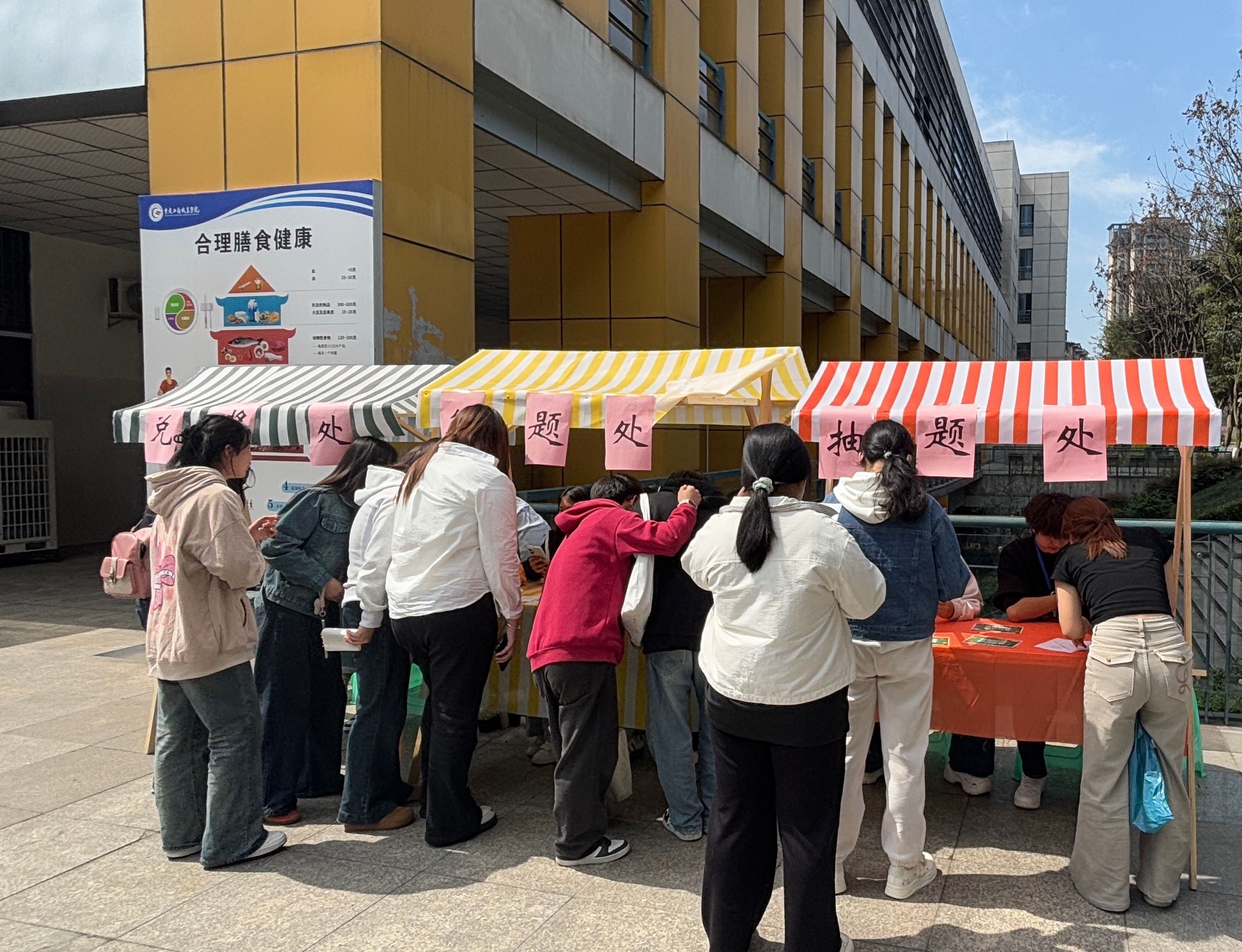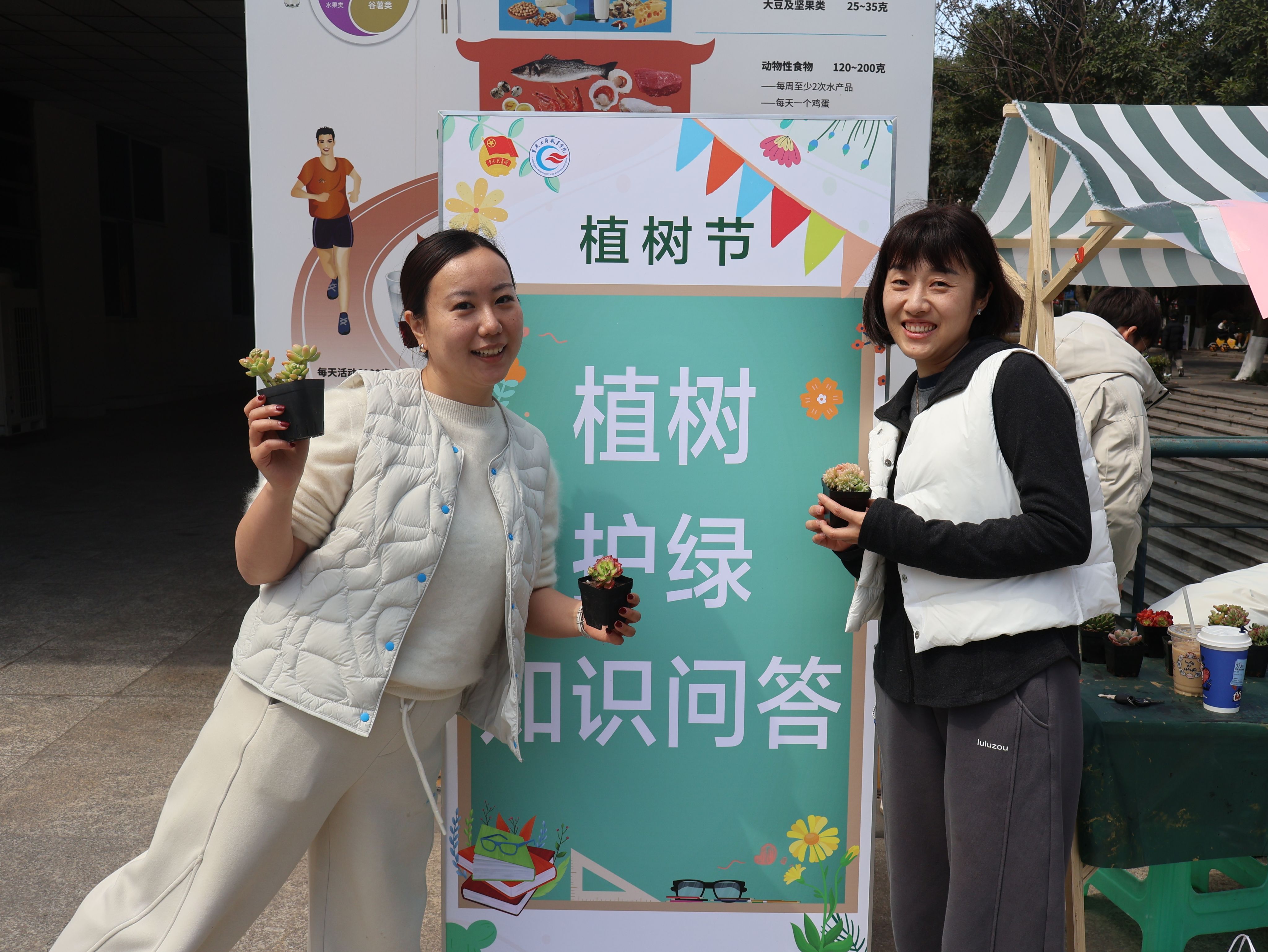 绿意带回寝,理念种进心。校园主干道旁,“植树护绿知识问答”活动吸引师生踊跃参与。活动题库涵盖环保常识、植物习性、生态政策等内容,题型多样、趣味十足。答对题目的师生可领养多肉绿植,将盎然春意带回办公室与宿舍,让绿色理念融入日常。