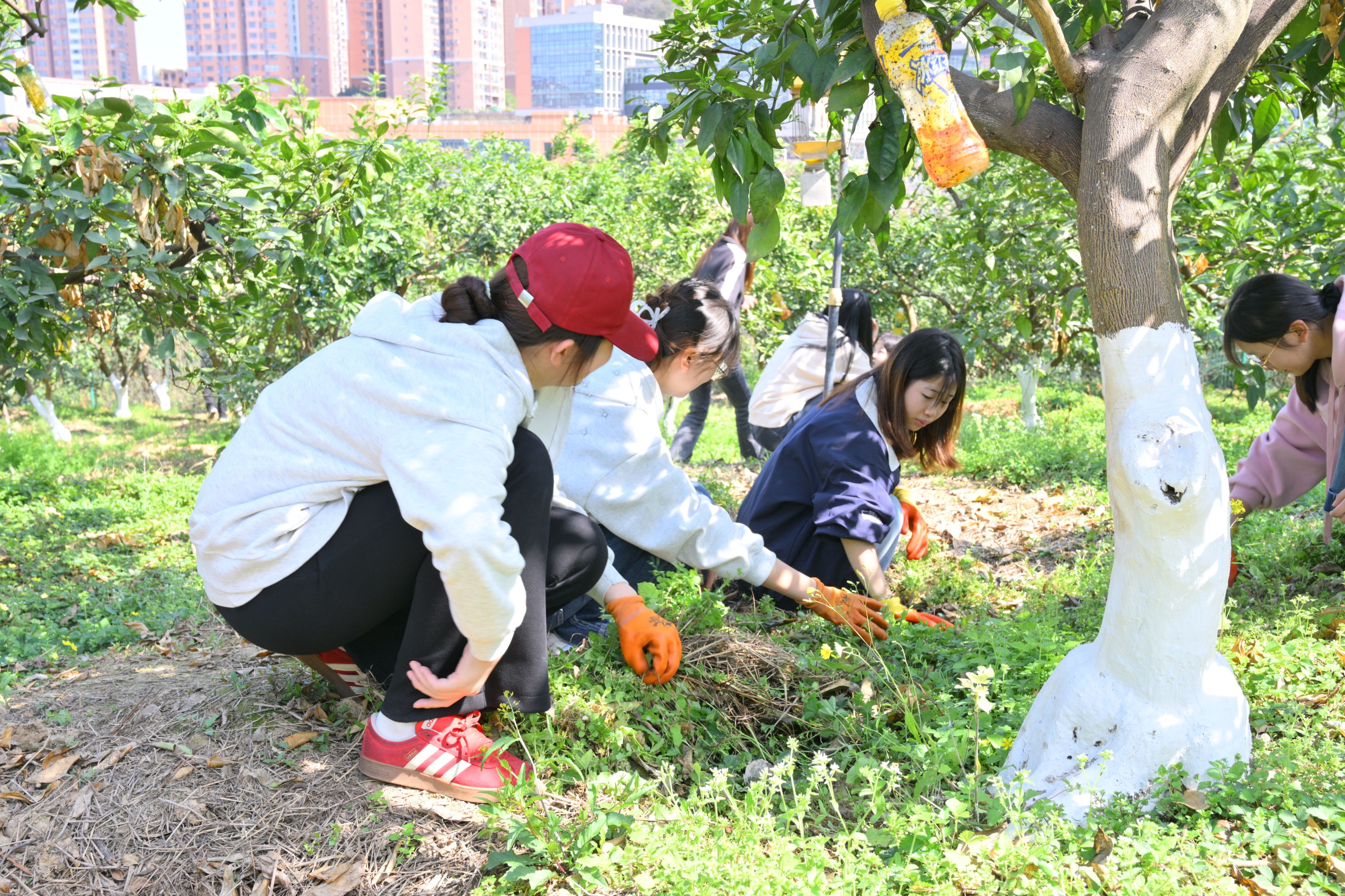 薪火传护绿,青春润橘林。3月11日下午,各学院团总支师生代表走进学校柑橘林,在橘植劳动社指导老师刘长泉的讲解指导下开展养护行动。师生们三五人一组,手持工具为柑橘树松土、浇水、修剪枯枝。同学们在劳动中解锁了柑橘树生长习性、春季养护要点,体会到了劳动耕耘与果实收获的不易。