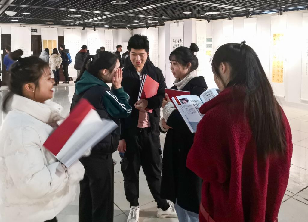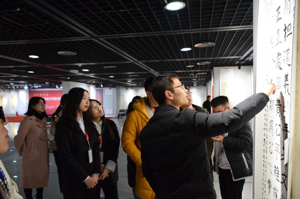 “北方•金鼎杯”大学生书画展由合川区文学艺术界联合会、合川区教育委员会、合川区文化旅游委员会主办,是面向合川在校大学生的传统赛事,每两年一届,是把校园文化与区域文化相互融合、让传统文化在高校得以传承和发扬的经典力作,历届都收获了良好的效果及社会反响。本次书画展由承办单位我校组织征集稿件,经过前期策划、筹备和宣传工作,共收到来自合川区7所高校的在校大学生作品共计200余件。画展现场热闹非凡,许多群众在观展后表示,此次画展作者水平较高,在书体的丰富性、作品的形式上也比往年有突破。