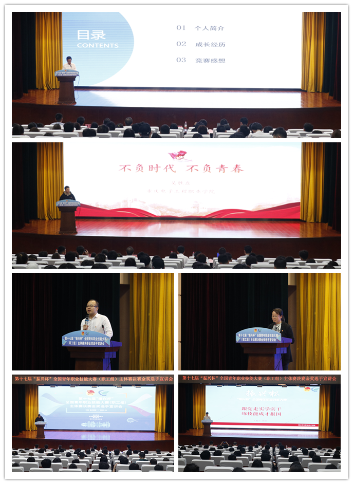 为贯彻落实习近平总书记关于技能人才培养工作的重要指示精神,努力引导广大青年走技能成才、技能报国之路,推进优良学风建设,4月12日,第十七届“振兴杯”全国青年职业技能大赛(职工组)主体赛决赛金奖选手宣讲会在我校合川校区科学会堂举行。