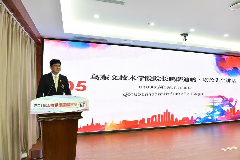 泰国乌东汶技术学院院长PONGSAKDIPON TAKAEW先生对我校的热情接待及对泰国学生来校学习提供的大力支持表达了感谢,勉励留学生勤奋学习、努力实践。