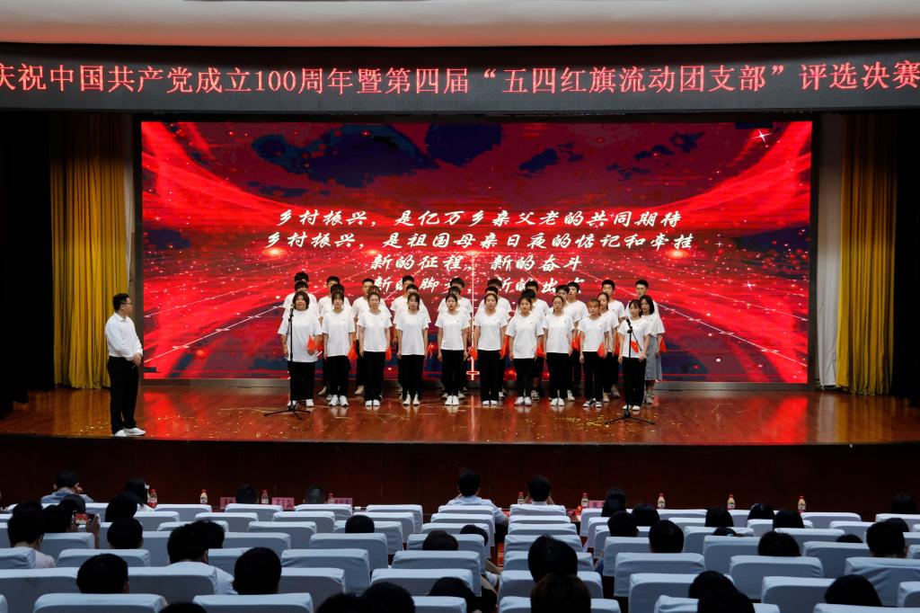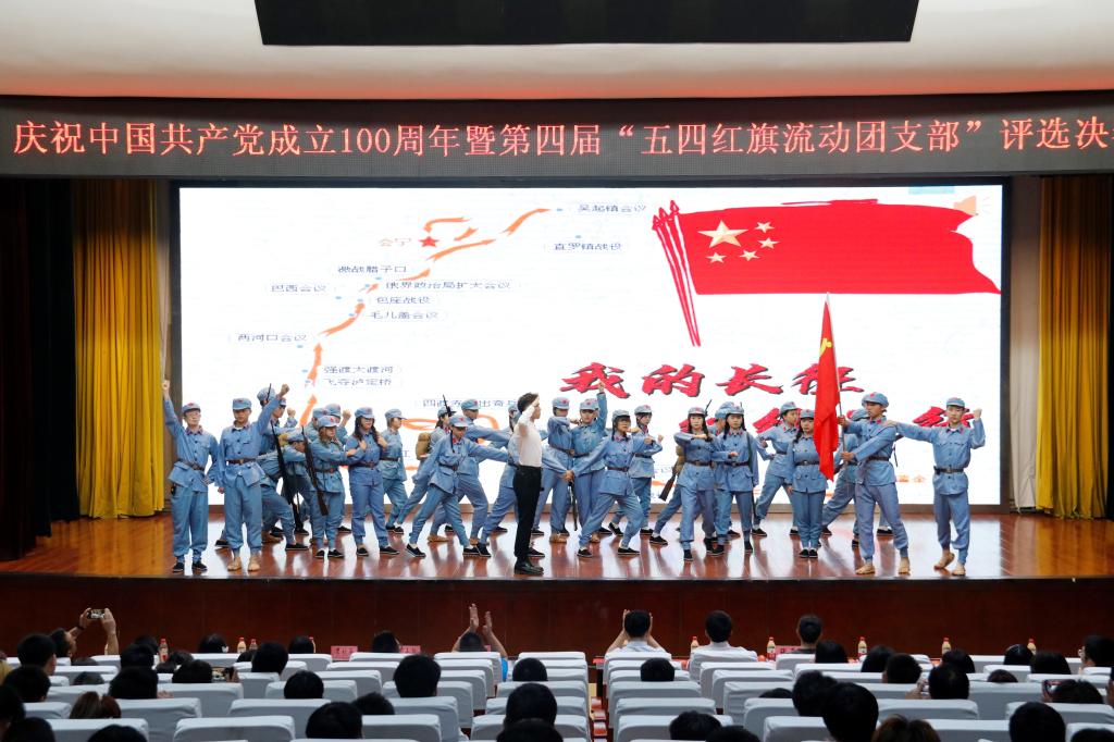 第四届“五四红旗流动团支部”自启动以来,全校300多个团支部积极参与,经主题理论示范学习、H5主题设计等初赛项目评比,10个团支部脱颖而出进入决赛。决赛中,各团支部以“青春心向党 奋进新征程”为主题,在教师指导下,结合所学专业特点,以舞台剧表演、朗诵、舞蹈等形式,将集体创作、集体编排的文化作品进行集中展演,充分展现了我校大学生“学党史 强信念 跟党走”的青春风采。经决赛比拼,共有6个团支部获得“五四红旗流动团支部”称号,10名团支部书记获“最美团支书”称号,1个团支部获得“H5最佳设计奖”。