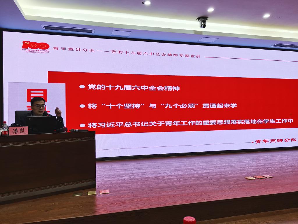 12月8日下午,团市委高校部部长潘毅到我校,面向青马学员宣讲党的十九届六中全会精神。