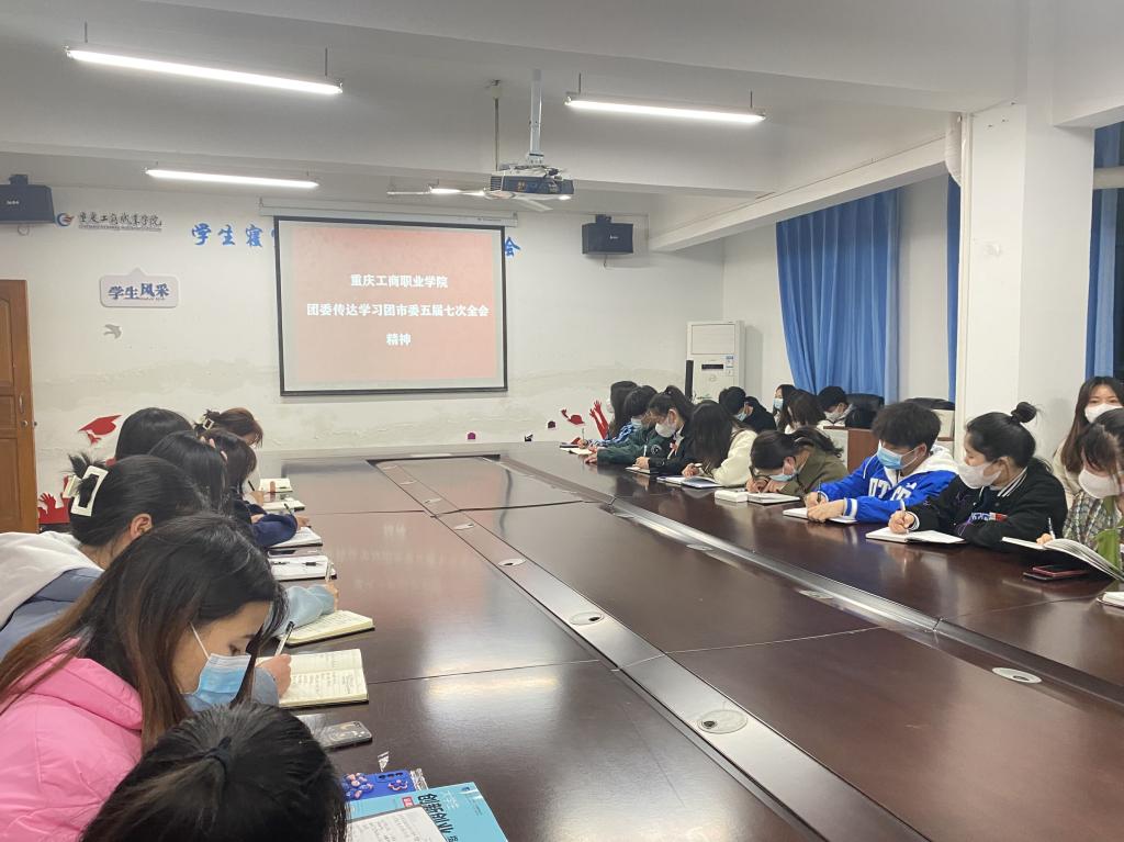会上,团委书记张基斌还传达学习了团市委书记廖传锦代表团市委常委会向全会做《深刻领悟“两个确立”的决定性意义,增强做到“两个维护”的行动自觉,为谱写重庆高质量发展高品质生活新篇章贡献青春力量》的报告,以及《关于开展团干部“六查六问”专项行动 进一步改进作风狠抓落实的实施方案(草案)》《关于开展“乡村好青年”行动计划 进一步助力乡村振兴的实施方案(草案)》《关于开展“心·希望工程” 进一步维护青少年合法权益的实施方案(草案)》《共青团重庆市委2022年工作要点(草案)》等重要文件。会议要求,全体团学工作人员要深刻领会全会精神,以迎接和学习宣传贯彻党的二十大为主线,结合庆祝建团100周年,聚焦立德树人根本任务,着力提升引领力、组织力、服务力和大局贡献度,团结引领团员青年塑造“四有”工商学子新形象,在服务学校高质量发展新征程中贡献青春力量。