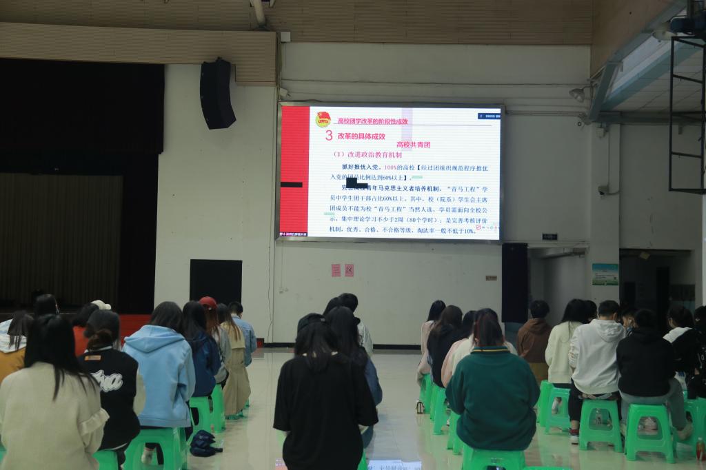 为深学笃用习近平新时代中国特色社会主义思想,不断深化学生会改革工作,提高学生会工作人员服务意识和业务能力,4月16日上午组织校院两级学生会工作人员集中学习重庆市“青马工程.鸿雁菁英学校”第十五期大学生骨干培训课程,下午邀请了团市委青发部李洪博老师和团市委高校部梁辉老师为我校校院两级学生会工作人员做专题培训。
