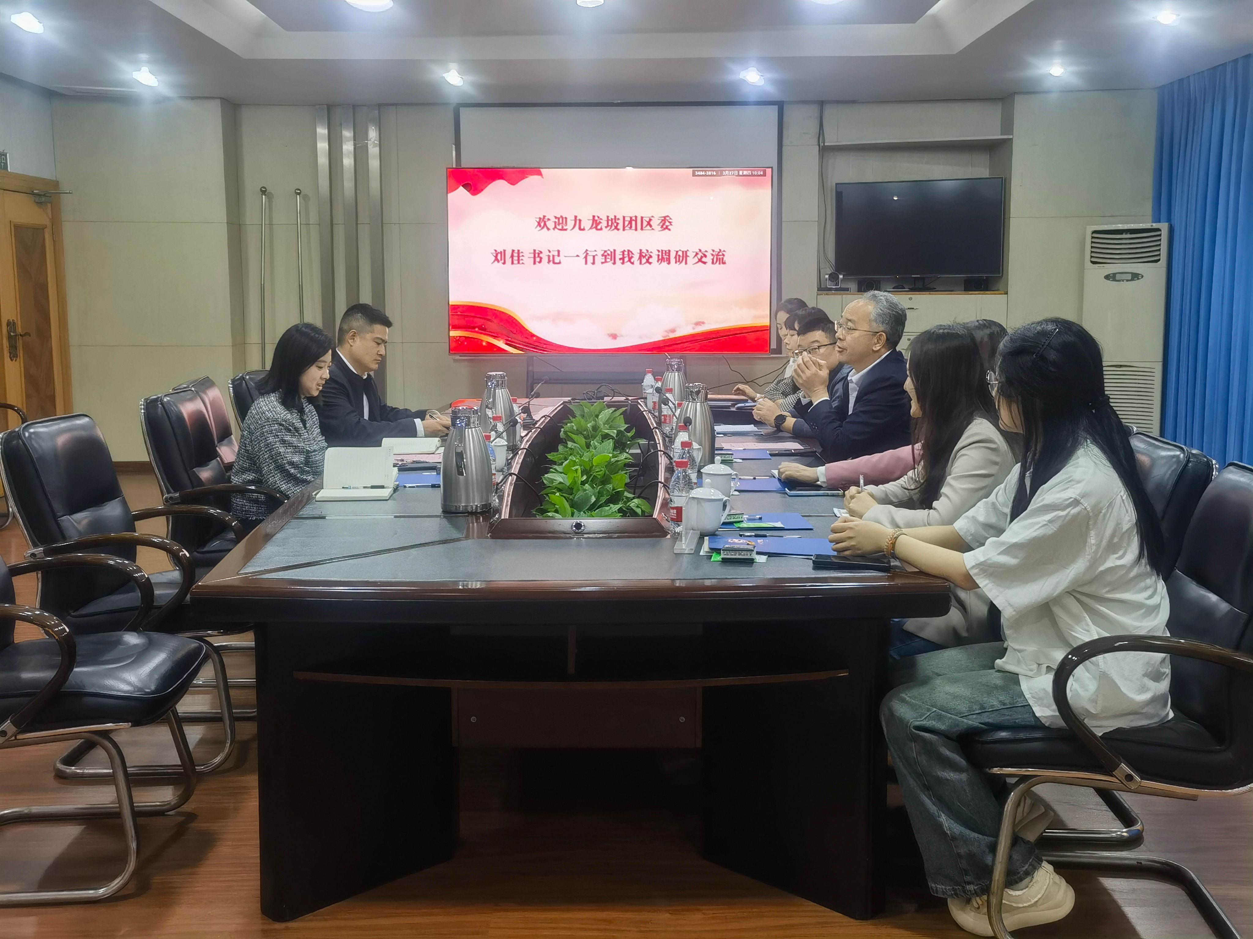 【供稿/校团委】3月27日上午,团九龙坡区委书记刘佳带队来我校调研交流共青团工作。党委副书记刘昌雄出席座谈。